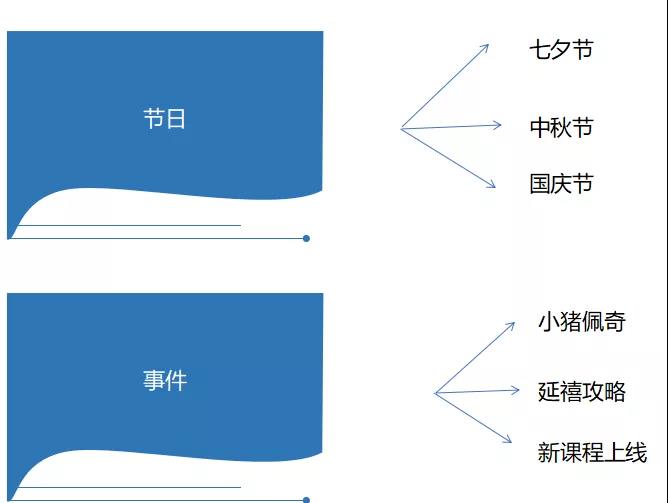 節(jié)日可以圍繞國家法定節(jié)假日(七夕節(jié)、中秋節(jié)、國慶節(jié))也可以是人造節(jié)日(618、雙十一、會(huì)員日等)來制造節(jié)日活動(dòng)。
