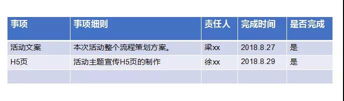 以上9點(diǎn)講了線上活動(dòng)各個(gè)節(jié)點(diǎn)策劃,最后一步則是把活動(dòng)每個(gè)環(huán)節(jié)落實(shí)執(zhí)行,通過excel表列清楚那個(gè)環(huán)節(jié)是由誰跟進(jìn)完成,可以直觀的看到活動(dòng)進(jìn)度。