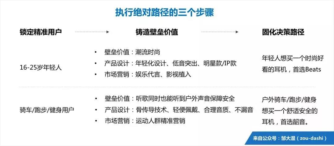 打造絕對(duì)路徑有三個(gè)步驟,分別是鎖定精準(zhǔn)用戶,鑄造壁壘價(jià)值和固化決策認(rèn)知。
