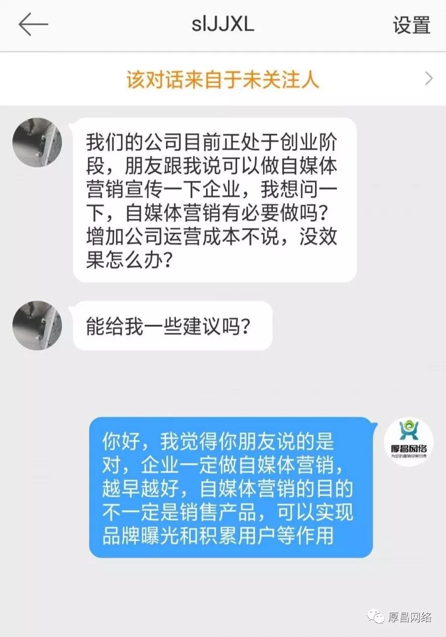 前天,有人在我們厚昌網(wǎng)絡(luò)顧問微博中留言說“我們的公司目前正處于創(chuàng)業(yè)階段,朋友跟我說可以做自媒體營(yíng)銷宣傳一下企業(yè),我想問一下,自媒體營(yíng)銷有必要做嗎?增加公司運(yùn)營(yíng)成本不說,沒效果怎么辦?”