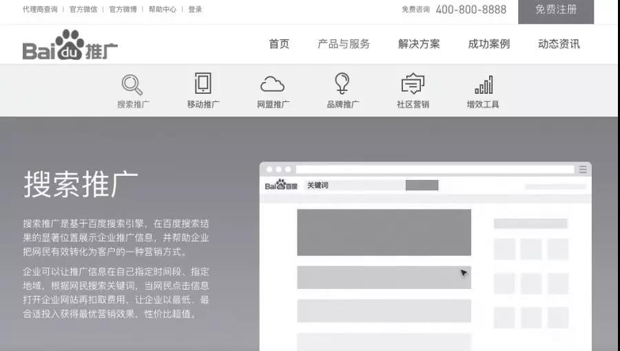 這些推廣最大的優(yōu)點在于用戶搜索時可以覆蓋的情況及精準程度,在一定行為上用戶搜索此關鍵詞則代表用戶需要相應的內(nèi)容支撐,這樣的推廣方式有助于企業(yè)及產(chǎn)品在搜索引擎方面進行大規(guī)模流量截流。但SEM這類推廣方式需要長期堅持使用進行沉淀, 效果才會顯著,否則效果甚微。