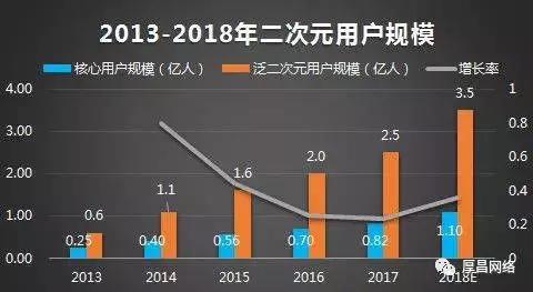 從2013年~2018年二次元用戶規(guī)模走勢圖可以看出,國內的核心二次元用戶規(guī)模和泛二次元用戶規(guī)模都是上升走勢,到2017年國內二次元用戶規(guī)模已超過3億人。隨著二次元文化的廣泛傳播,優(yōu)秀泛二次元作品的陸續(xù)出現(xiàn),將會吸引更多的泛二次元用戶。